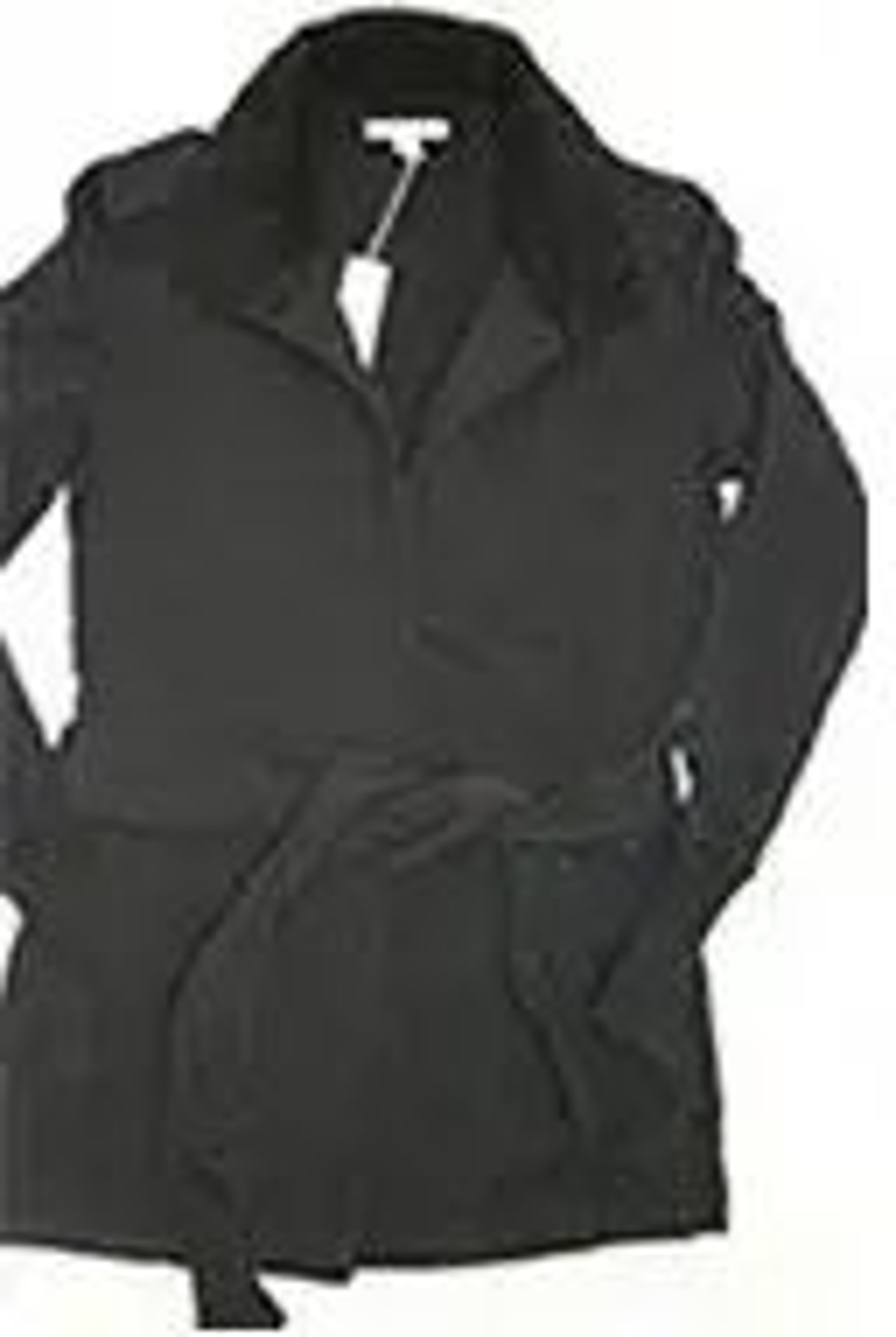 Description: The jacket is a belted, wrap jacket with a Sherpa fleece-lined collar. It has two side pockets and wide knit cuffs at the wrist. Each jacket is 100 percent cotton and was manufactured in various colors. A label with the style number is located on the side seam of the inside of the jackets.