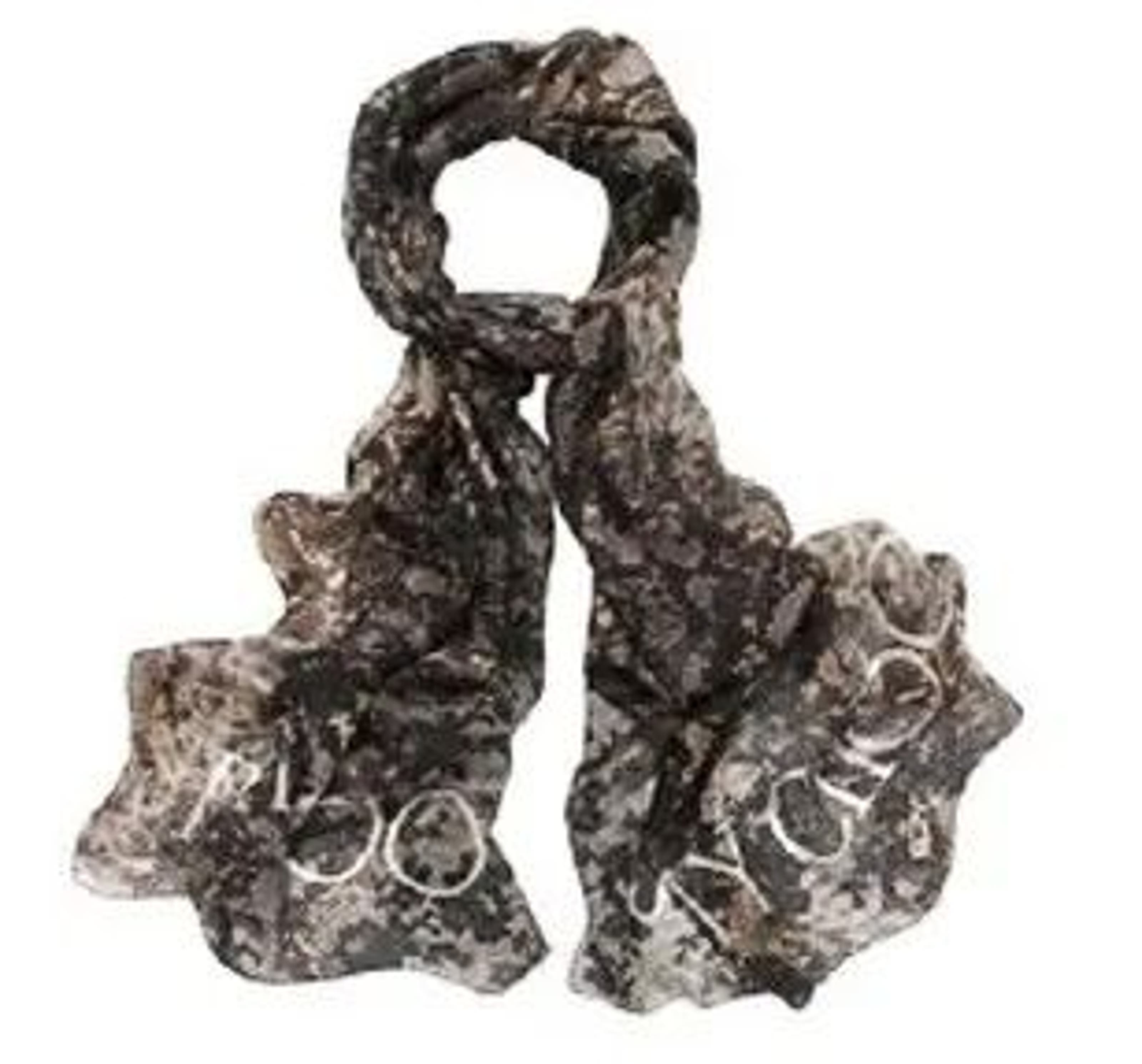 Description: The silk scarf has a black, brown and grey print and the following VPN number: 134 SOMA SHO.