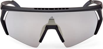 Sports styling amps up these modern shield sunglasses featuring wraparound protection for on the field or in the streets.