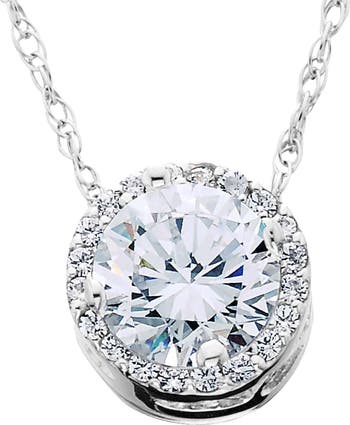 This popular women s fancy solitaire pendant features 3/8ct center and 16 round brilliant cut accent stones. All diamonds are 100% lab grown and set in solid 14k white gold. An 18" 14k white gold chain is included.