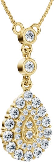 1/2Ct Pear Shape Dangle Bezel Penant Gold Necklace 1" Tall Lab Grown