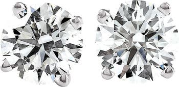 This pair of round brilliant cut diamonds are prong set in a 14k white gold setting. Both earrings include screw backs for comfortable wear.