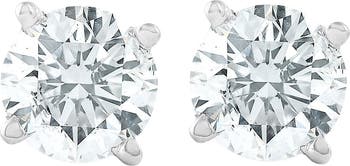 This pair of round brilliant cut diamonds are prong set in a 14k white gold setting. Both earrings include screw backs for comfortable wear.