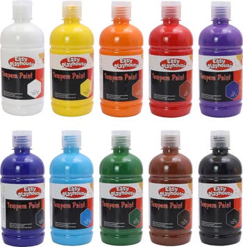 Unleash your child s creativity with the Easy Playhouse Tempera Paints 10 Pack. Featuring a vibrant assortment of 16.9oz (500ml) bottles, these washable tempera paints are the perfect tool for classroom projects, arts and crafts, and letting little imaginations run wild. Crafted with a non-toxic, kid-friendly formula, these paints can be used on a variety of surfaces, including paper, canvas, and wood. The thick, creamy consistency delivers smooth coverage and rich color payoff, making it easy for your child to bring their artistic visions to life. With a range of classic hues like red, blue, yellow, and green, as well as more unique shades, this set offers endless possibilities for creative expression. And when the masterpiece is complete, the washable formula makes cleanup a breeze – no more stained clothes or surfaces. Encourage your child s creativity and let them explore the world of color with these high-quality, safe tempera paints from Easy Playhouse. Unlock their artistic potential and watch their imagination soar. Order the 10 Pack today and inspire the next generation of young artists.