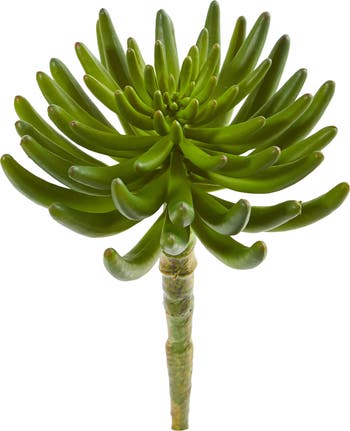 This artificial succulent plant is a deep green color with thick, spiky leaves. Coming in a set of six, you could arrange them all together in a low-sitting vase with a bed of sand, or place them throughout your home in your existing bouquets for a fun Southwestern feel.