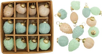 12-Piece Flocked Pastel Glass Ornament Set, Blue, Mint and Peach Color
