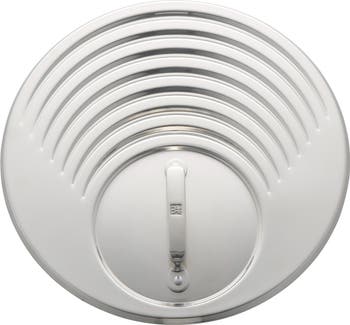 The innovative design of this universal lid features an off-center handle so it prevents a small pan s handles from interfering, locking the lid into place for a tight fit.
