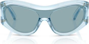 Embolden your sunny-day look in these sleek shield-shaped sunglasses crafted from smooth plastic and fitted with tinted lenses that offer full-coverage UV protection.
