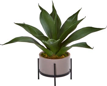 Situated in a decorative planter with a stand and topped with natural moss, the agave artificial succulent has stunning thick, lifelike green leaves that extend outward and drape elegantly. This 14-inch agave can make an excellent centerpiece for a sofa table, especially when paired with a lightly-colored table runner or placemat.