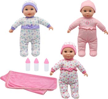 14" Triplets Dolls with Large Blanket 3 Bottles, Ages 2+