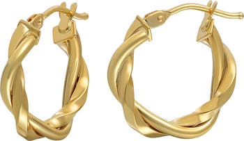 These classic hoop earrings are handcrafted in Italy from 14-karat gold and feature two gleaming hoops overlapping each other for a smooth, fluid look.