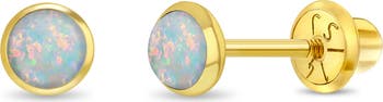 Delicately crafted for your little one, these charming earrings are made from genuine 14k yellow gold and feature a timeless round bezel design. At the heart of each earring lies a luminous opal stone, radiating soft, iridescent hues that shimmer with every movement. Designed with both beauty and safety in mind, they are secured with child friendly safety screw back closures, ensuring a comfortable and secure fit for everyday wear. These earrings make a lovely gift for birthdays, special occasions, or simply to add a touch of elegance to your little girl’s jewelry collection. Gift box included with purchase.