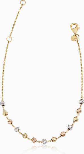 Hand etched yellow, white and rose solid gold balls come together to form our Brilliant Ball Station Bracelet. A dainty, yet noticeable bracelet, you ll find it s the tricolor staple piece you can t stop wearing.