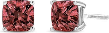 A timeless jewelry essential, these lab grown pink diamonds studs will bring unparalleled sparkle to your ears. These elegant lab grown diamond stud earrings feature a 4-prong basket setting in a glistening 14K white gold metal. The 2 cushion cut lab-grown diamonds radiate a beautiful vivid pink sparkle as they float within the four-prong setting of these 14K white gold stud earrings. Each lab-grown diamond is crafted to the highest standards and has a VS1-VS2 clarity grade making them essentially flawless to the naked eye. The studs include dazzling cushion lab grown diamonds with a total weight of 1 1/2 carat and come with a screwback clasp for a secure and comfortable fit.