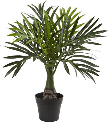Incorporate relaxing hints of Mother Nature to your everyday interiors with the help of this artificial plant boasting vibrant, areca palm foliage, designed in a miniature silhouette to help breathe freshness to even the smallest of spaces. Standing 15.5” high from an accompanying nursery planter, this miniature fake palm plant makes for effortless, year-round display. Silk plants are manufactured using synthetic materials, such as polyester material or plastic, and are well designed and constructed to be life-like in appearance. This item will need to be re-shaped when removed from the secure box to allow it to reach its fullest size. Your artificial plant will look beautiful for years to come; simply wipe clean with a soft dry cloth when needed.