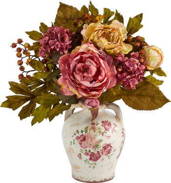 16-in Peony Artificial Arrangement in Flower Print Jar