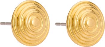Timeless chic. Gold plated round post earrings with ribbed detail.
