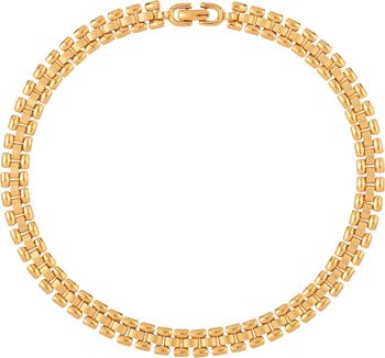 Everyday essentials. 22ct triple gold plated geometric textured watch band collar.