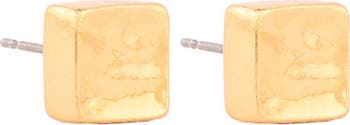 Timeless chic. A classic square shaped gold plated post earring with subtle hammered detail.