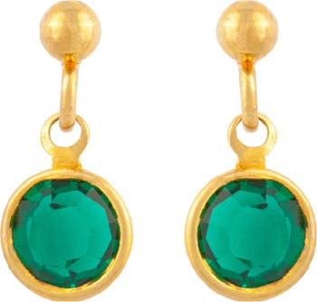 Elegant and Chic. Gold plated post earrings featuring an emerald green sparkling faceted Swarovski drop.