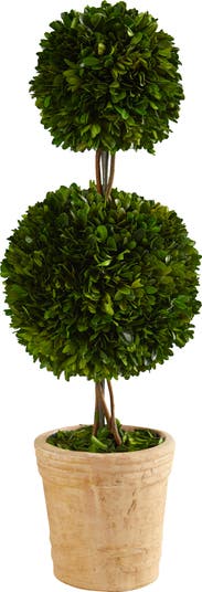2.5-ft Preserved Boxwood Double Ball Topiary Tree in Decorative Planter