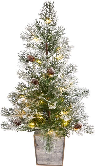 2-ft Frosted Pre-Lit Artificial Christmas Tree with Pinecones in Decorative Planter
