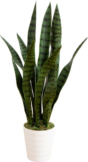 2-ft UV Resistant Artificial Sansevieria Snake Plant in White Decorative Planter