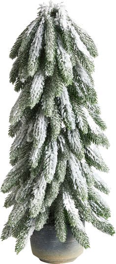 Spread Christmas cheer to your tabletops with this desktop artificial Christmas tree. Recreate a snowy winter wonderland with the snow dusting on the thick branches. Hang all your favorite Christmas ornaments quickly and effortlessly, and you can even illuminate with your favorite lights. Standing 21in. from a decorative planter, add to any desktop. Perfect for a kids room, office or mantel. Faux Christmas Trees are manufactured using synthetic materials, such as polyester material or plastic, and are well designed and constructed to be life-like in appearance. This item will need to be re-shaped when removed from the secure box to allow it to reach its fullest size. Your artificial Christmas Tree will look beautiful for years to come; simply wipe clean with a soft dry cloth when needed.