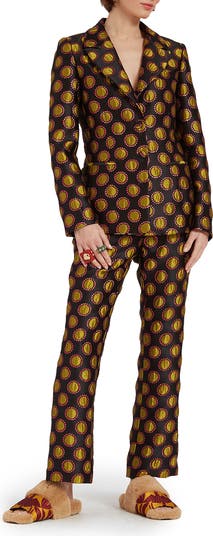 ​​If the next Bond is a woman, she s wearing this blazer. An updated take on a seventies silhouette, the 24/7 Jacket has a structured shoulder and slightly tapered waist for a fiercely flattering fit. Done in this dazzling Ruby brocade with the 24/7 Pants to match, this totally dynamite piece will elevate anything you put it with. Even sweat pants. Promise.