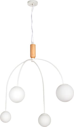 - A celestial orb of light, this pendant lamp features frosted glass spheres and a rubberwood frame, creating an ethereal glow