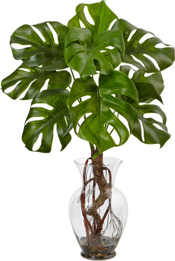 Bring the rainforest of southern Mexico to any living space. This Monstera with Vase Arrangement beautifies every corner of your home. This gapped leaf plant can be perfectly paired with wicker furniture and woven textures for a tropical look. Complete with a clear curved vase that shows off the Monster s roots.
