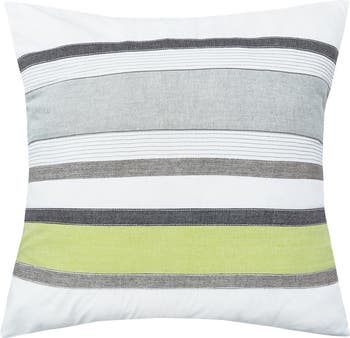 The boulder and indigo stripe design on this 100% cotton pillow gives any bedroom a cool and modern feel. With a vibrant citron green accent stripe, the Jones pillow brings trending color to the look while still maintaining a relaxed vibe.