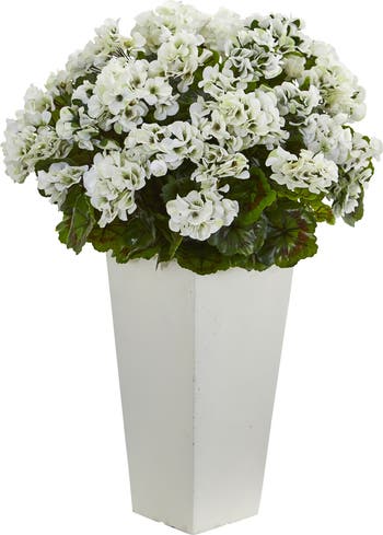 This brilliant artificial geranium is a perfect way to make a bold statement when placed on a conference table or end table. The faux blooms are so realistic that you ll almost think that you can smell them.