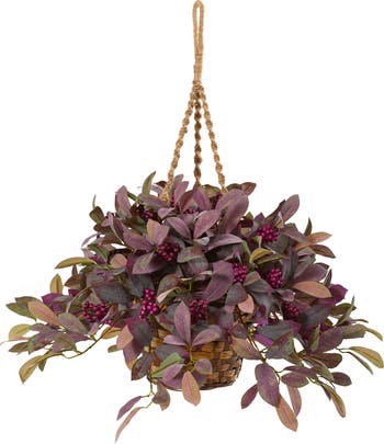 28-in Fall Laurel Leaf with Berries Artificial Plant in Hanging Basket