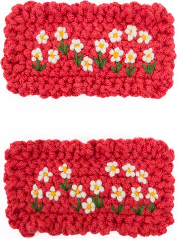 Soft and charming, the Hand-Crocheted Floral snap clip set features delicate embroidered flowers on a cozy yarn base. Designed to add a warm, handmade touch, it’s perfect for everyday styling with a sweet, timeless feel.\nComes in a charming keepsake tin—perfect for gifting or storage.\nIncludes 2 snap clips (Cream or Red)\nHand-crocheted floral design\nFelt-backed for a secure, comfortable hold\nLightweight and easy to wear