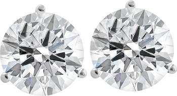This stunning womens matching pair of round cut diamonds features two genuine lab grown diamonds Excellent Cut. The diamonds are 3 prong set in solid 14k white gold and secured with 14k white gold push backs.