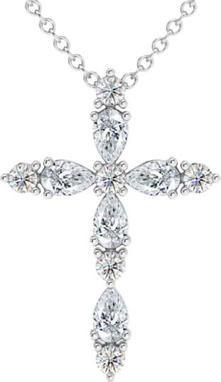 3/4Ct Diamond Cross Round Pear Shape 14k Gold Necklace Lab Grown 1" Tall