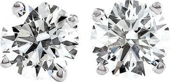 Matching high quality pair of lab created diamonds studs set in solid 14k white gold.