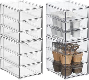 The 3-Drawer Stackable Organizer is the perfect way to reclaim your kitchen space. This clear, easy-sliding drawer offers easy accessibility and visibility to your belongings, simplifying item location and retrieval. Finished with a sleek, integrated handles, create a clean, clutter-free look in the kitchen, pantry, closet, office, or anywhere that needs organizing.