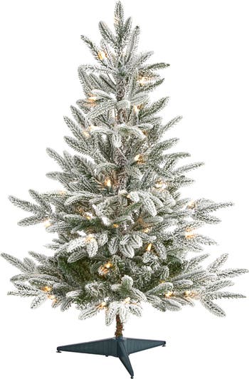 Create your own winter wonderland scene this holiday with the help of this flocked artificial Christmas tree. Completely maintenance-free, this winter-inspired artificial Christmas tree boasts a full and robust silhouette made up of 133 easy-to-bend branches to showcase all your favorite holiday ornaments, all beautifully flocked in a winter coating of faux snow to evoke the impression of freshly fallen snow. Arriving pre-strung with 50 clear LED lights to eliminate unsightly tangles and carefully stabilized on a metal stand, this snowy 3 artificial Christmas tree will undoubtedly transform your holiday decor, year after year.