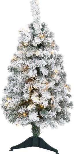 Evoke a winter wonderland this season with the help of this Flocked Rock Springs Spruce Artificial Christmas Tree. Easy to set-up and entirely maintenance-free, this winter-inspired Christmas tree boasts a rich collection of realistic looking foliage consisting of 110 easy-to-bend branches for showcasing your own personalized ornaments and holiday accents - all lightly frosted with faux snow, creating a picturesque Christmas. Arriving pre-strung with 50 clear LED lights to eliminate tangles and carefully stabilized on an accompanying stand, this versatile 3 tall frosted artificial Christmas tree will undoubtedly transform any home or office into a joyous holiday setting for years to come.