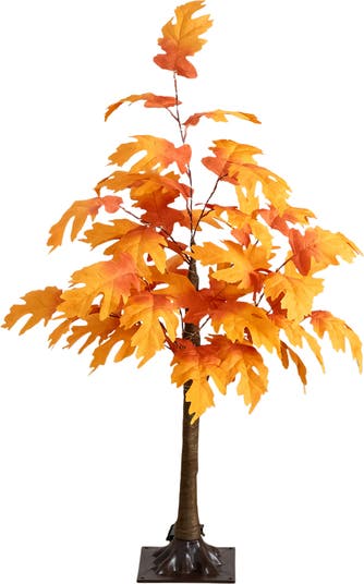 Invite the season to your home with this autumn maple artificial fall tree. Pre-lit with 80 warm white LED lights, this tree is a vibrant accent to autumn s colors. Shape the branches for a custom look and recreate the serenity of a forest in October. Watch as it transforms your space into a cozy atmosphere, perfect for both nights in and parties. Plus, the energy-efficient LED lights give you that warm feel without the worry of costs on the electricity bill. Standing 3-Ft from a sturdy black stand, display in a planter of your choice or leave as is. Welcome the faux maple tree home, where it s faux-ever fall and always just right. Designed to stay vibrant and full, without the need for water or rake, this tree is the perfect, maintenance-free way to infuse your space with the essence of a fall day—any day of the year.