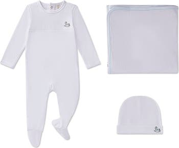 What makes this cute 3-piece set so perfect for your little pumpkin? The secret s the superior fabric: 100% Pima cotton, famous for soothing softness and airy, breathable comfort. Result? All 3 premium pieces pamper your tot s tender skin. Embroidered and printed accents add a tasteful finishing touch.