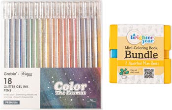 - Includes: 3 mini adult coloring books + keeper box + 18 gel pens