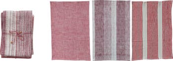 3-Piece Woven Patterned Tea Towels, Red and Natural
