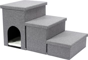 - 3-In-One Dog Stairs: Features two storage organizers and a cozy condo. The storage boxes can hold toys and snacks, while the plush condo underneath offers a soft resting place for puppies, cats, and small pets, combining functionality with comfort.