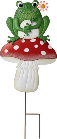 Introducing our whimsical frog-inspired garden stake, capturing the playful moment of a frog perched on a mushroom. Crafted from iron, it features vibrant colors, lifelike layered details, and delicate embossed textures, creating a delightful and charming aesthetic. It comes with both jute rope and detachable stakes, can be used not only as a yardstakes but also as wall decor.
