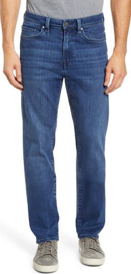 Classic relaxed-fit, straight-leg jeans are shaped from premium stretch denim with a versatile sanded and whiskered finish.