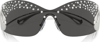 Sparkling crystals enrich the frames and temples of statement-making sunnies fitted with adjustable nose pads for a secure fit.