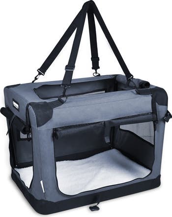 - MACHINE WASHABLE FLEECE BED PAD: The indoor outdoor travel dog crate has a fleece pad inside it. It is machine washable for easy convenient cleaning. The quality fleece bed provides a comfortable place for your pet to sleep lounge.DOUBLE ZIPPERED LOCK: It can successfully prevent your pet from accidental escape. PORTABLE LIGHTWEIGHT designed soft dog crate makes outdoor travel a breeze. Easy carry transport with the adjustable shoulder strap.